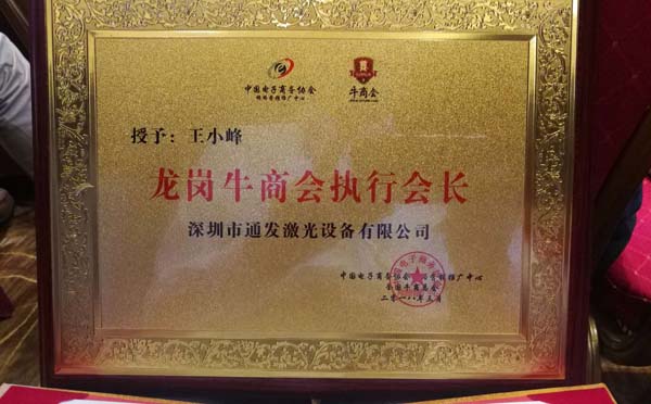 深圳市龍崗牛商會執(zhí)行會長,深圳市通發(fā)激光設(shè)備有限公司副董事長王小峰從深圳上千企業(yè)家中脫穎而出,同其他九位優(yōu)秀企業(yè)家共同獲得了第九屆深圳十大牛商的殊榮。
