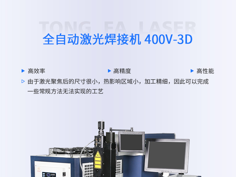 TFL-400V/500V-3D激光焊機是一款高穩(wěn)定性、大功率的焊機,滿足長時間生產(chǎn)的需要。大功率激光電源,大功率散熱系統(tǒng)滿足24小時大批量生產(chǎn)。機身采用高強度結(jié)構(gòu),保證精度、性能穩(wěn)定。控制系統(tǒng)是專為激光焊接量身定做的專業(yè)4軸控制系統(tǒng),穩(wěn)定性高,易學(xué)易懂易上手。擴展性強,可結(jié)合流水線、光電傳感器、氣動夾具等組合進行全自動無人值守式加工。