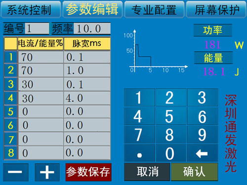 5、設備具有波形調(diào)用功能,可以根據(jù)上位機的指令,在不同工位使用不一樣的激光能量,適合加工復雜工況。