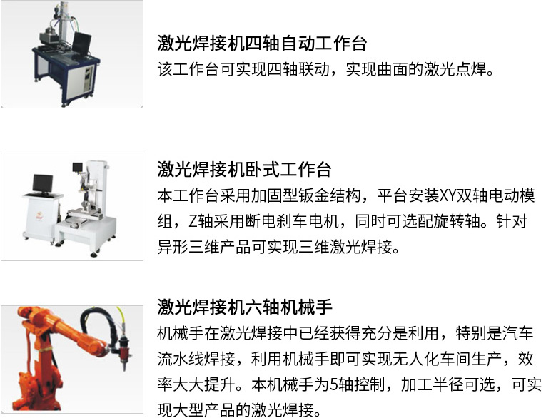 現(xiàn)廣泛應(yīng)用的領(lǐng)域有手機外殼、筆記本電腦外殼、五金構(gòu)件、廚具衛(wèi)浴、軍工制造、電池外殼、動力電池、儀器儀表、馬達、IT手機構(gòu)件、硅鋼片、汽車配件、激光熔覆、醫(yī)療器械等精密零件焊接。