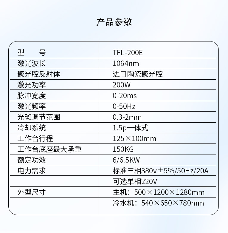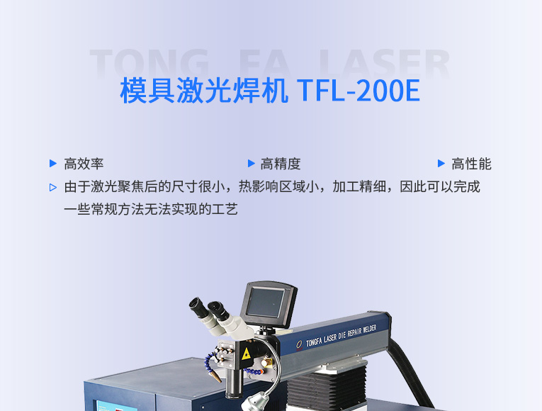 出口型模具激光焊機(jī)是通發(fā)激光公司專門為出口國外客戶使用而設(shè)計(jì)的系列機(jī)型TFL-200E,適用于各類精密注塑模具、壓鑄模具等模具激光修補(bǔ)焊接;同時(shí)也適合鑄件沙孔激光修補(bǔ)、模具崩缺激光修復(fù)、過切加工等的激光修補(bǔ);各類金屬結(jié)構(gòu)件、金銀首飾的激光焊接加工。