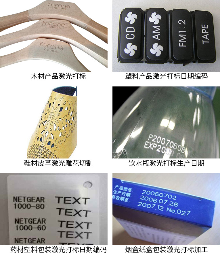 2、應(yīng)用于醫(yī)藥包裝激光打標(biāo)、建筑石材激光打標(biāo)、飲料包裝在線價格打標(biāo)日期、橡膠制品激光打標(biāo)、非金屬工藝禮品激光打標(biāo)、皮革切割打標(biāo)加工等行業(yè)。