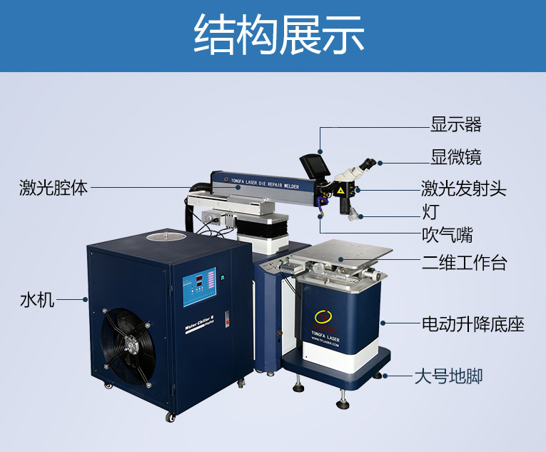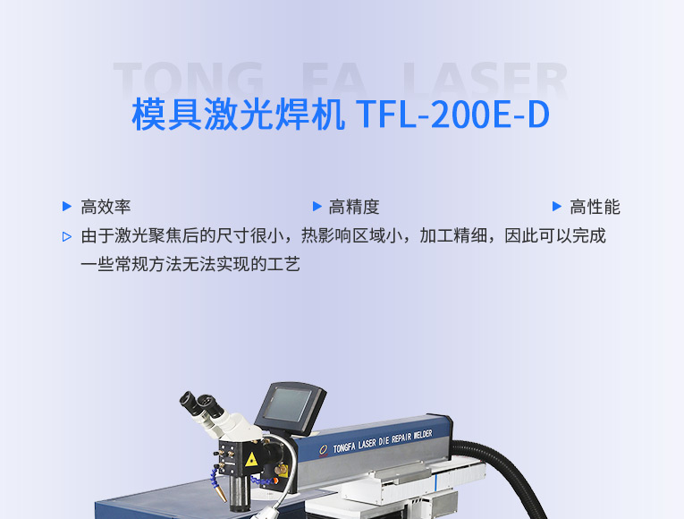 出口型模具激光焊機(jī)是通發(fā)激光公司專門(mén)為出口國(guó)外客戶使用而設(shè)計(jì)的系列機(jī)型TFL-200E-D,配置激光頭電動(dòng)升降,同時(shí)配置操縱桿無(wú)極調(diào)速控制XY橫向和縱向電動(dòng)移動(dòng)。適用于各類精密注塑模具、壓鑄模具等模具激光修補(bǔ)焊接;同時(shí)也適合鑄件沙孔激光修補(bǔ)、模具崩缺激光修復(fù)、過(guò)切加工等的激光修補(bǔ);各類金屬結(jié)構(gòu)件、金銀首飾的激光焊接加工。