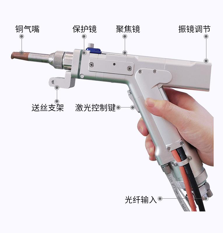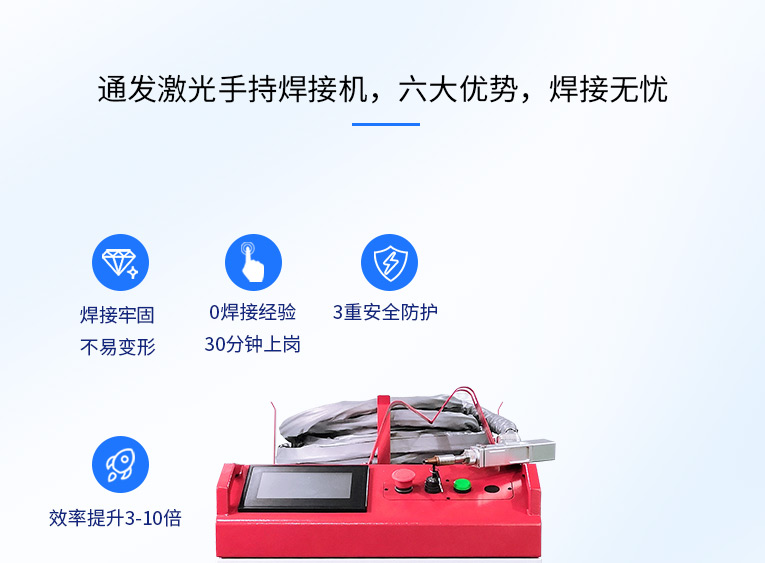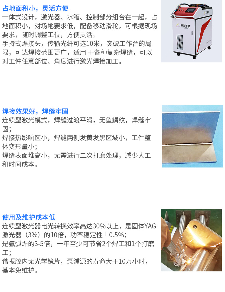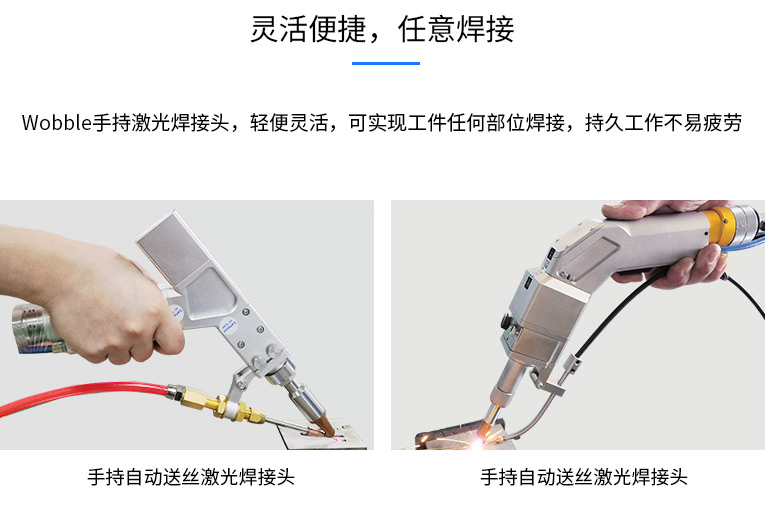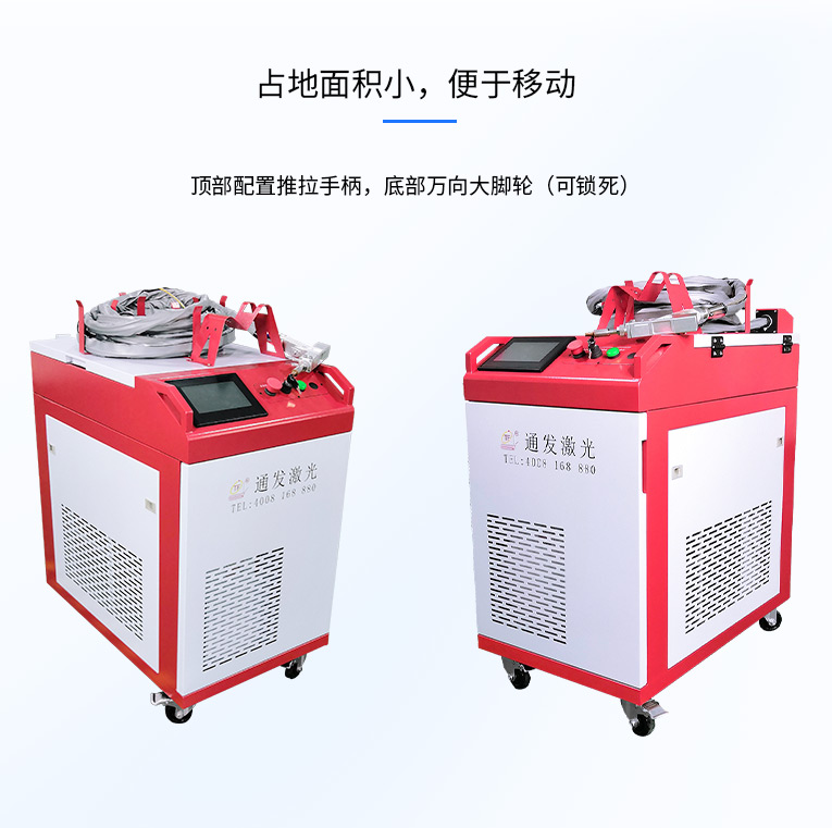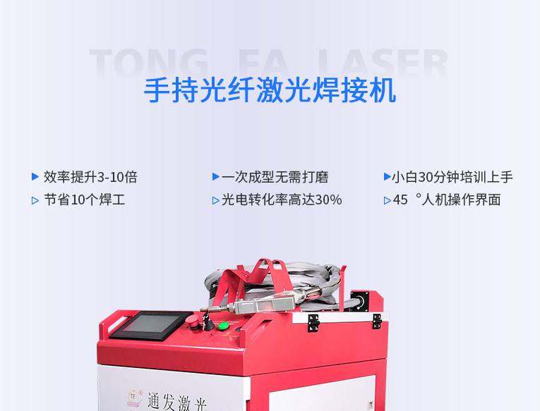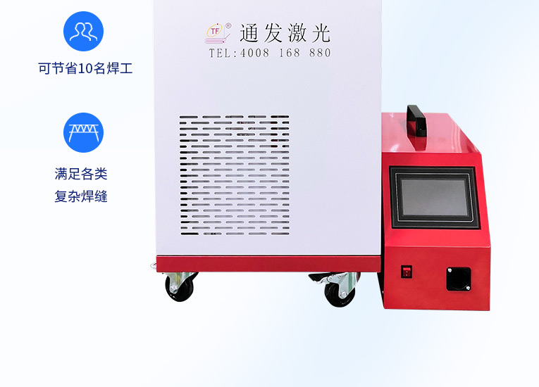 通發(fā)激光一體式手持式激光焊接機,用手持式焊接槍替代以前固定光路,手拿焊接,靈活方便,焊接距離更長,克服工作臺空間的局限性,工件尺寸不統一時無法自動焊接的情況下使用。主要針對大型工件、固定位置如內直角、外直角、平面焊縫焊接、焊接時熱影響區(qū)域小,變形小、而且焊接深度大,焊接牢固。是遠距離焊接大工件的較為靈活的全新的焊接工藝。