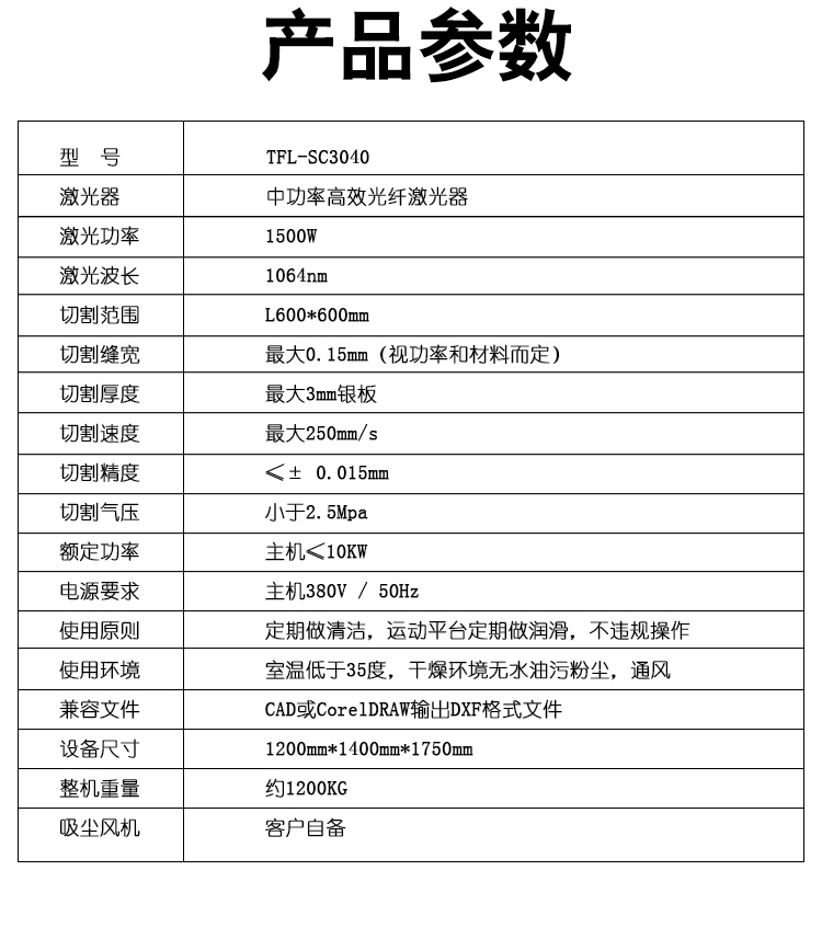 激光功率: 1500W