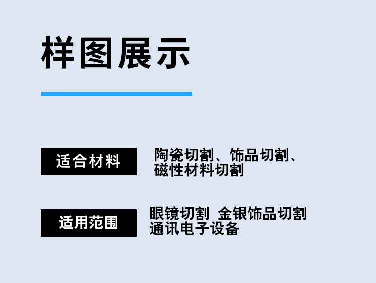 精密小幅面激光切割機TFL-LCP4060精度高,重復(fù)性好,不損傷材料表面,適用于眼鏡切割、陶瓷切割、飾品切割、磁性材料切割;切縫成型不發(fā)黑,光滑平整,板材成型切口無需人工再處理。